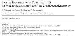 “Pancreaticogastrostomy Compared with Pancreaticojejunostomy after Pancreaticoduodenectomy,” J.P. Arnaud, J.J. Tuech, C. Cervi, and R. Bergamaschi, European Journal of Surgery, vol. 165, no. 4, April 1999, pp. 357–62. (Thanks to Gary B. Rollman for bringing this to our attention.) The authors are at the University Hospital of Angers, France. [AIR 15:6]
