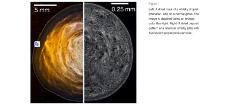 “We were motivated to pursue the ideas here from examining a whisky droplet after drying on an ordinary glass where it creates a relatively uniform particle deposit, which is in contrast to the well-known ‘coffee-ring stain’. “