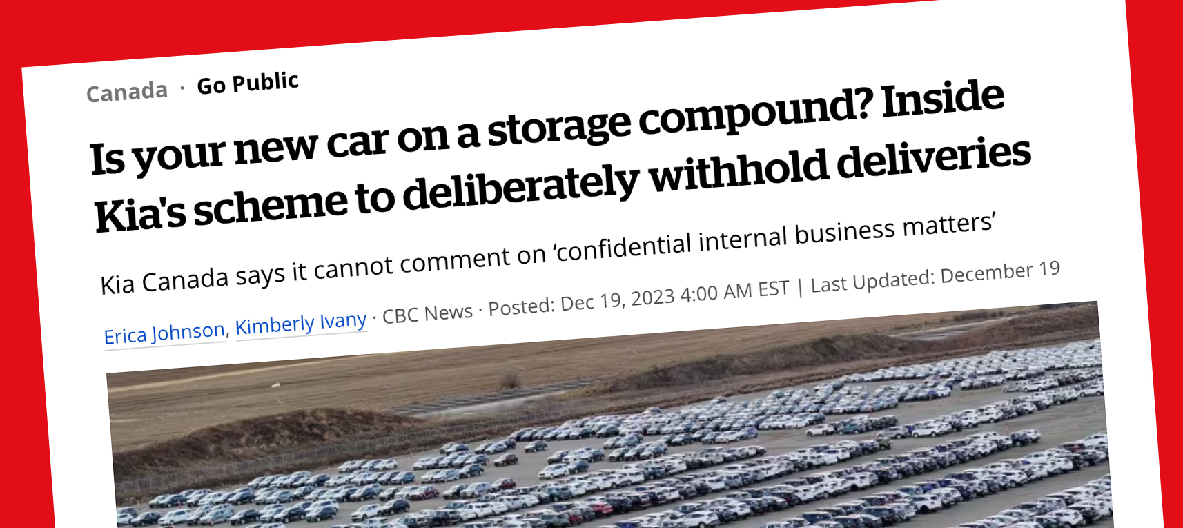 New Kia vehicles that have arrived from overseas are sitting on a storage lot in Wolverton, Ont., purposely locked up even though customers have been waiting months and months — some well over a year — to get their vehicles.