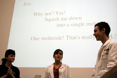 MUSICAL PERFORMANCE: The event included a performance of the Ig Nobel mini-opera "Atom and Eve," starring singers Aynsley Bruce, Helen Knight, Sam Leighton, and pianist Mr. Derek Fry, under the inspiration of singing teacher Mrs. Betty Kidd -- all of St. Columba's School, Kilmacolm.