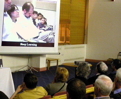 IG NOBEL WINNERS: Several Ig Nobel Prize-winners gave five-minute talks/demonstrations and took questions. Among them: Andre Geim, David Gadian, Pek Van Andel, Charles Paxton and Kees Moeliker. (See below for a brief description of what each did to win an Ig; for more detail, click here.)