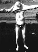 Physician Doug Lindsay, age 73 at the time this photo was taken, also experimentally stripped nearly to the buff during a research expedition to Antarctica. The photograph here first appeared in an Annals of Improbable Research annual swimsuit issue (vol. 4, no. 2, March/April 1998).